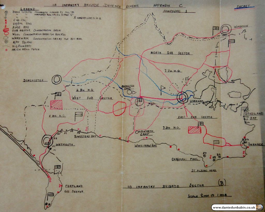 Dissatisfaction with pillboxes appears to have started much earlier. In October 1940, the 50th Division brigades were replaced along the East Dorset coast by the 210th Infantry Brigade with the 7th Bn Suffolks at Studland and Sandbanks. Just along the coast at Lulworth, Michael Joseph, a company commander in the 9th Bn Royal West Kents recorded that: